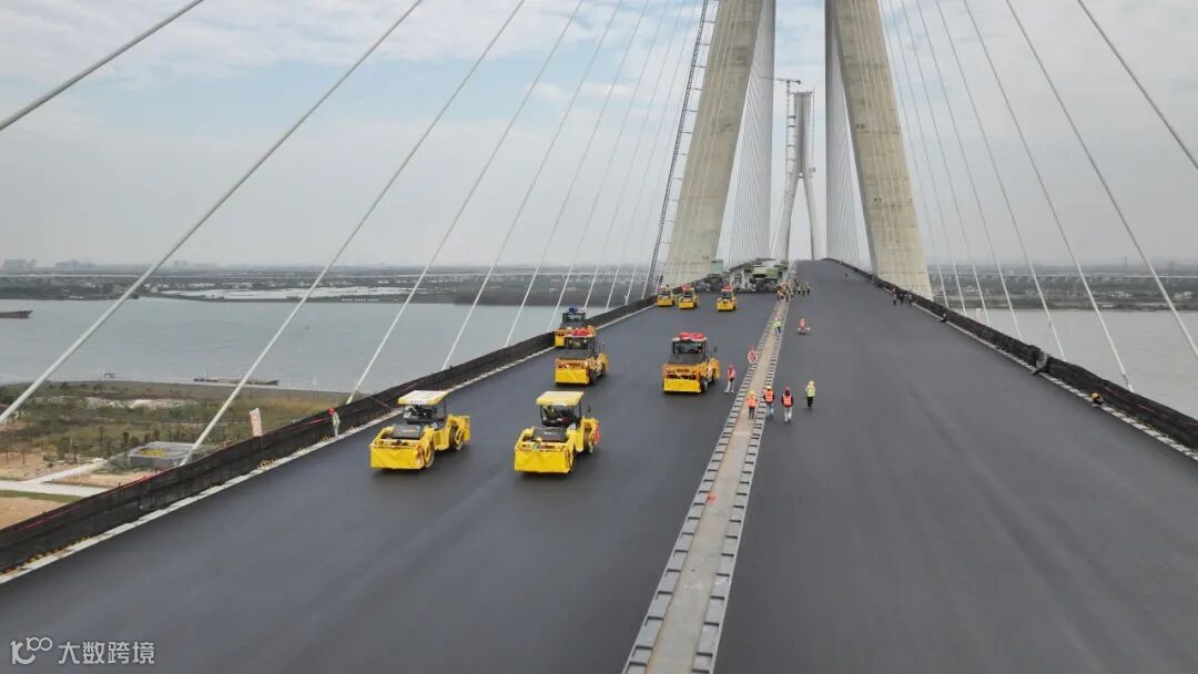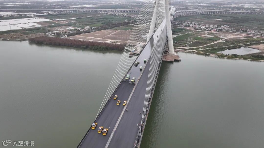 2月9日,保利长大承建的香山大桥主桥钢桥面铺装圆满收官。
