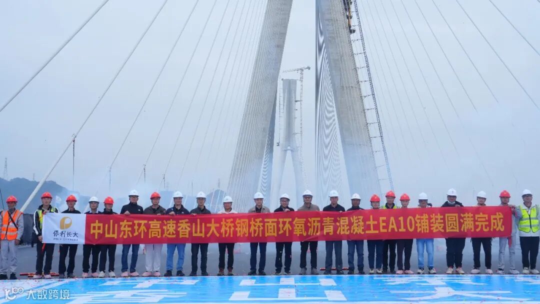 香山大桥主桥钢桥面铺装的圆满完成,标志着大桥建设迈入新阶段,彰显了保利长大自主研发材料优异性能和钢桥面铺装领域的技术硬实力。项目团队通过精细化管理,深度融合智能建造与技术创新,为同类工程提供可复制、可推广的实践经验,推动钢桥面铺装技术迈向更高水平。