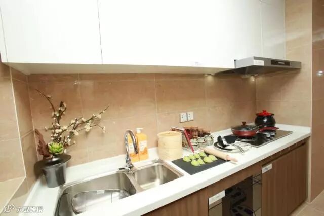 ▲厨房赠送国际名牌厨电三件套:燃气灶、抽油烟机、消毒柜,洗炒切得心应手,每个人都能做大厨!