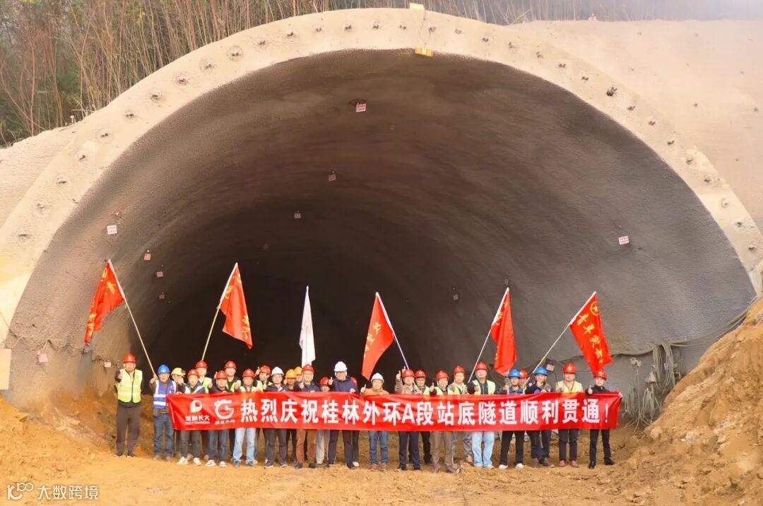 12月6日,桂林外环A段项目全线7座隧道全部实现双幅贯通,为后续路面工程全面推进奠定坚实基础。
