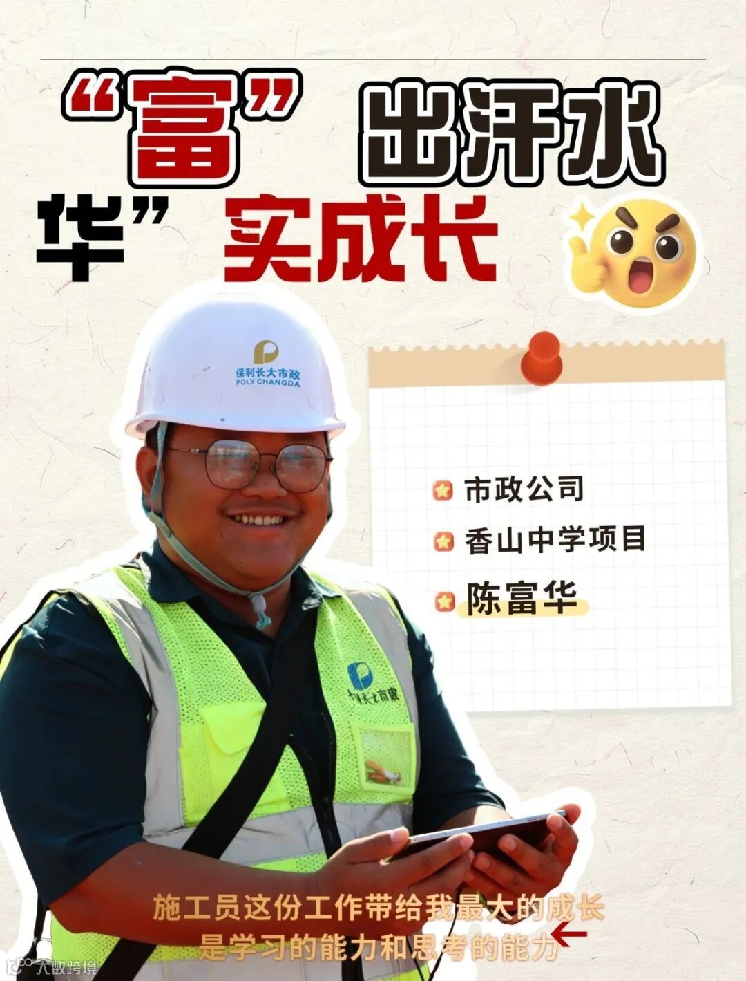 凭着这份踏实肯干、尽职尽责的作风,他连续多次被评为标杆员工和先进员工。这些荣誉背后,是一条又一条凌晨回宿舍的路,是一份又一份细致到页页分明的台账,是他对“施工员”这三个字的坚持、敬畏与热爱。他自己说,施工员这份工作带给他最大的成长,是学习的能力和思考的能力;在别人看来,他带给团队的,是可靠、踏实、值得托付。