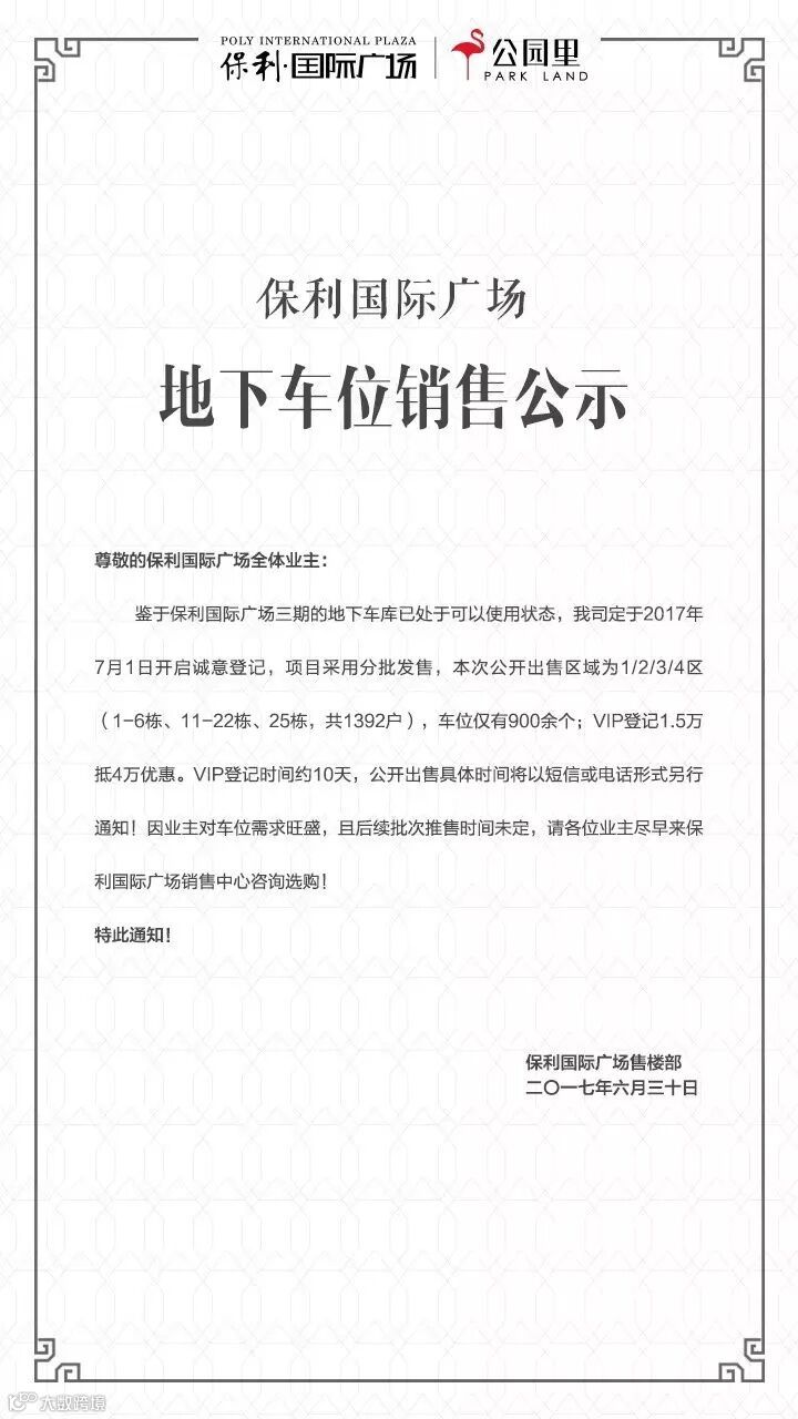 品“位”生活,全城追逐。继保利国际广场一二期车位受到广大客户热捧之后,三期车位顺应民意,全新登场,诚意登记7月1日再次盛大开启!
