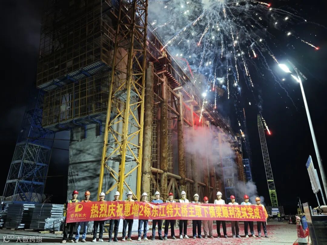 6月29日晚,惠增高速项目建设迎来重大进展,关键控制性工程东江特大桥2#主墩横梁顺利浇筑完成。至此,大桥2#、3#主墩横梁全部施工完成,进入上塔柱施工新阶段。