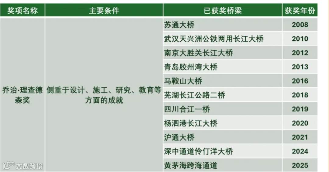 国际桥梁大会(IBC)是由美国宾夕法尼亚州西部工程师协会主办的国际桥梁学术会议,在世界桥梁界享有极高声誉与影响力,该大会奖项设立于1988年,每年评选一次,共设有7项大奖,且每项每次仅授予一个工程项目。