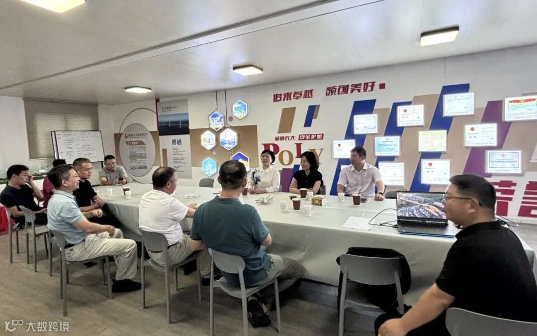 在茂名服务区项目会议室,领导们听取汇报了解项目进展、安全生产、劳动保护、高温防暑等方面的工作情况。