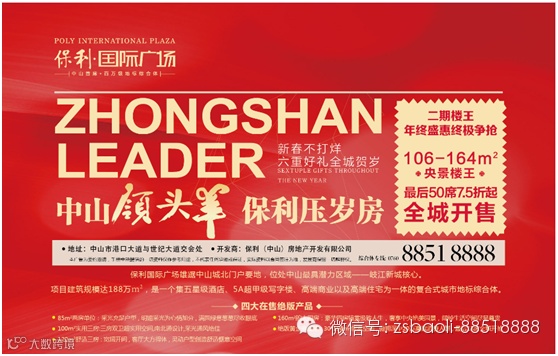 保利国际广场压岁房,簇拥流畅Arc-Deco外立线体、贝尔高林度假酒店风格园林;独具超大综合体的繁华和四大公园的清新生态环境;尽享85-164方复合式空间,青春时尚的都市两房、雅致奢华的传统三房、富丽堂皇的合家四房。
