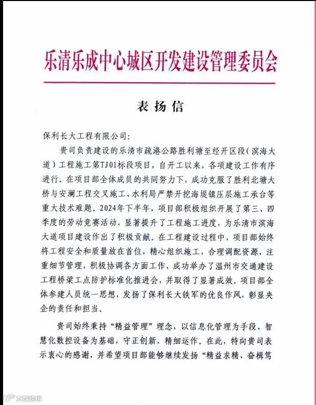 乐清项目团队积极践行“精益管理”理念,严格遵守各项施工规范和质量标准,精心组织施工、合理调配资源、严格质安管控,成功克服了胜利北塘大桥与安澜工程交叉施工、水利局严禁开挖海堤镇压层施工承台等重大技术难题,确保了工程建设安全、优质和高效。
