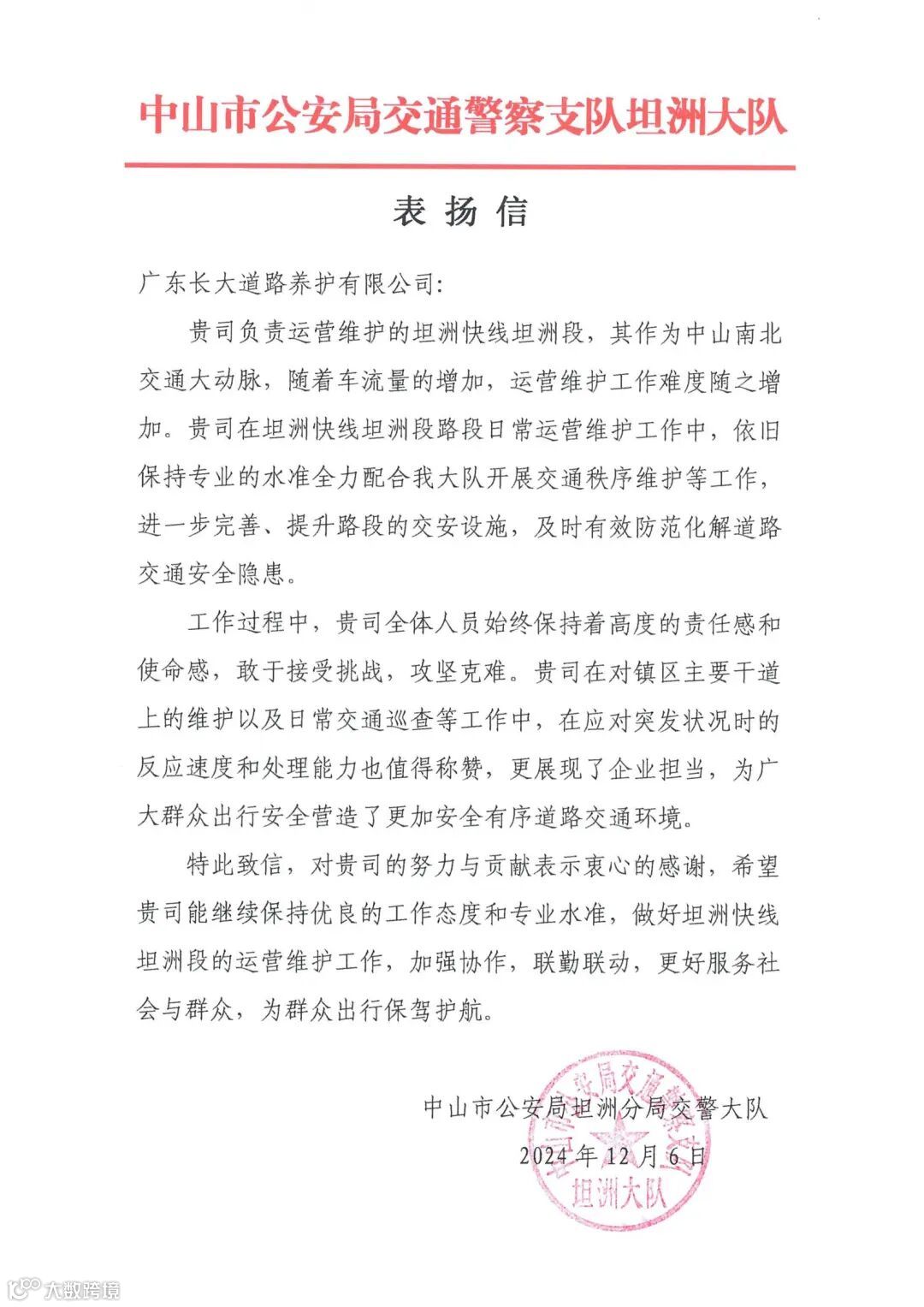 坦洲快线养护项目部始终保持着高度的责任感和使命感,在镇区主要干道维护、日常交通巡查等工作中,持续提升应对突发状况时的反应速度和处理能力,为广大群众出行营造了更加安全有序的道路交通环境。