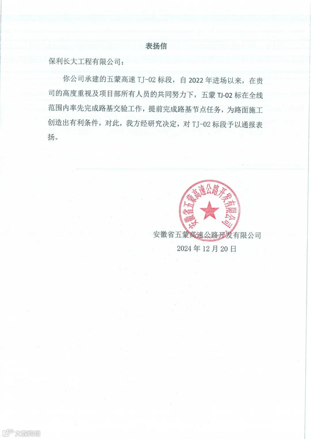 五蒙高速TJ-02标涵洞通道、桩基、立柱、系梁、承台、盖(帽)梁、梁板吊装、灰土填筑等8大分项工程均在全线率先完成,获得项目公司高度评价。