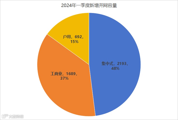 国家能源局此前披露显示,2023年全年光伏发电新增并网容量21630万千瓦,其中集中式12001.4万千瓦,分布式9628.6万千瓦。截至2023年末,集中式累计并网35448.1万千瓦,分布式累计并网25443.8万千瓦,占比约41.786%,据此计算,分布式在累计并网容量中的占比今年一季度提升了约0.67个百分点。