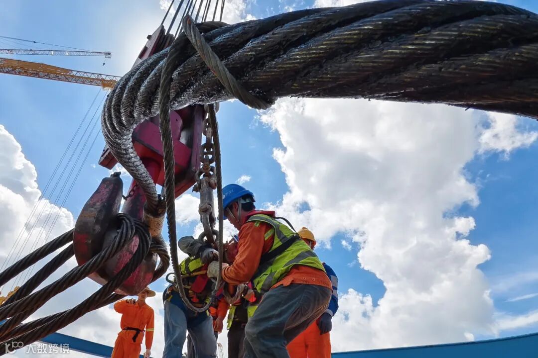 目前,狮子洋通道T9标已完成东主塔承台及塔座、东锚碇底板等节点施工任务,将继续加大物料投入、保持高效建设态势,全面推进塔柱、锚碇及东高墩区引桥等重点施工工序,确保高质量完成狮子洋大桥建设,为粤港澳大湾区的发展注入新活力。