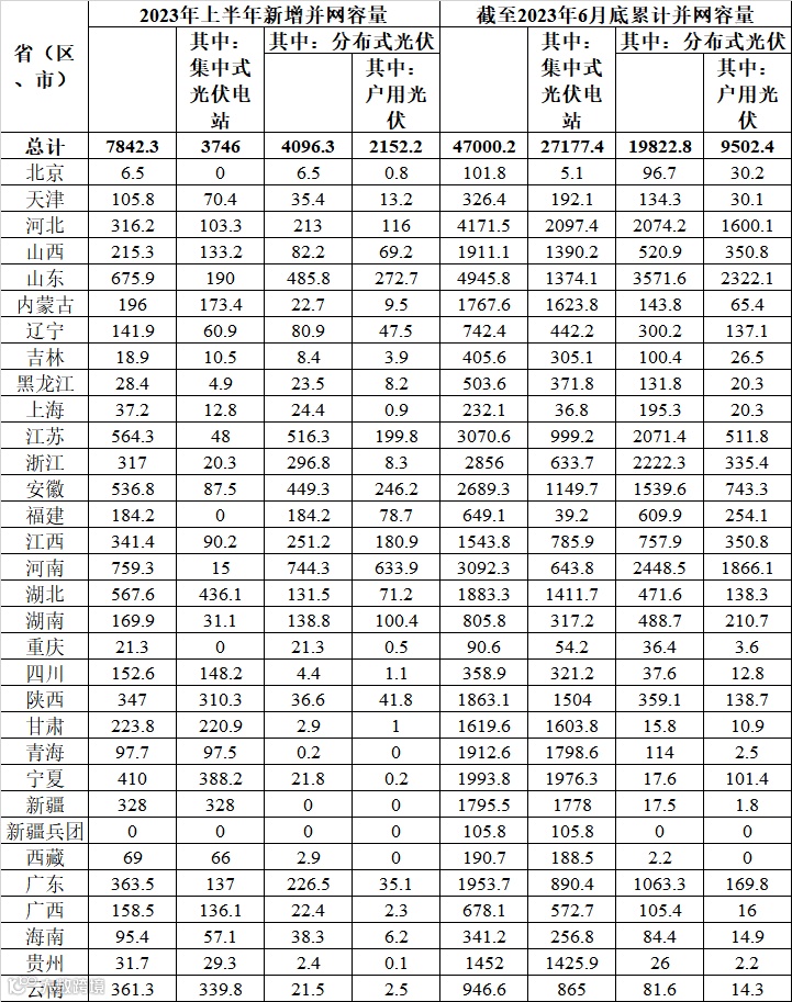 3、2023年上半年部分省(自治区、直辖市)装机有退运减容,截至2022年底累计并网容量按当年净增并网容量统计。