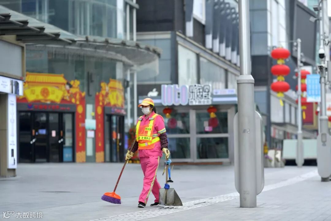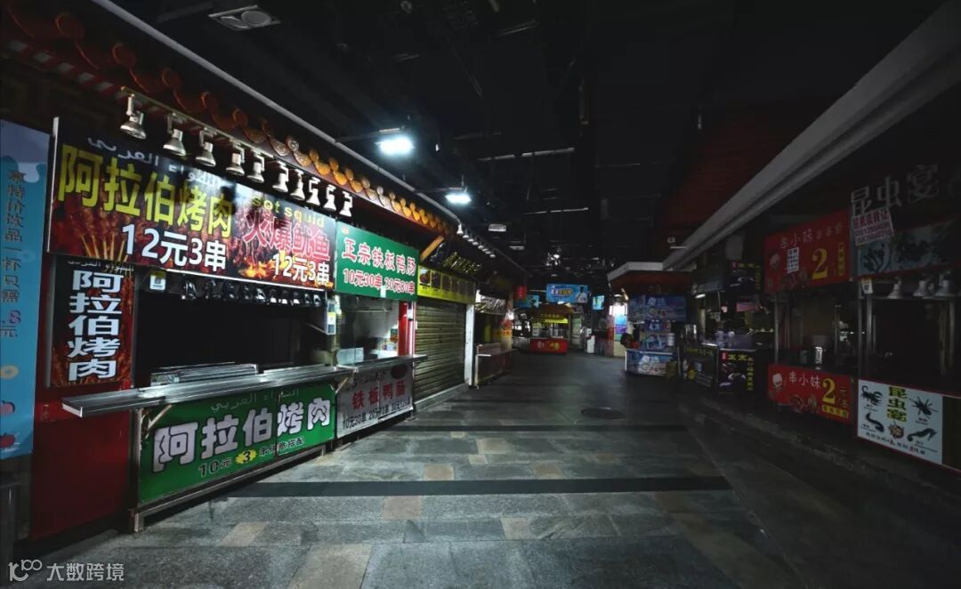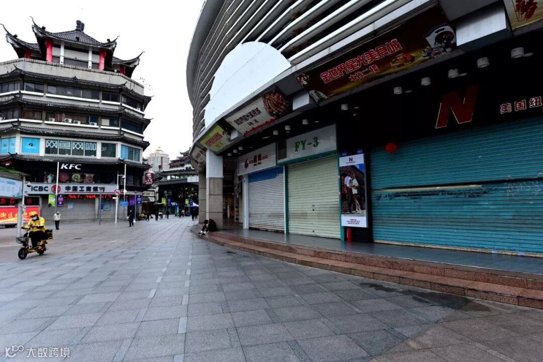 平日熙熙攘攘的东门步行商业街,大部分店铺都关门歇业。