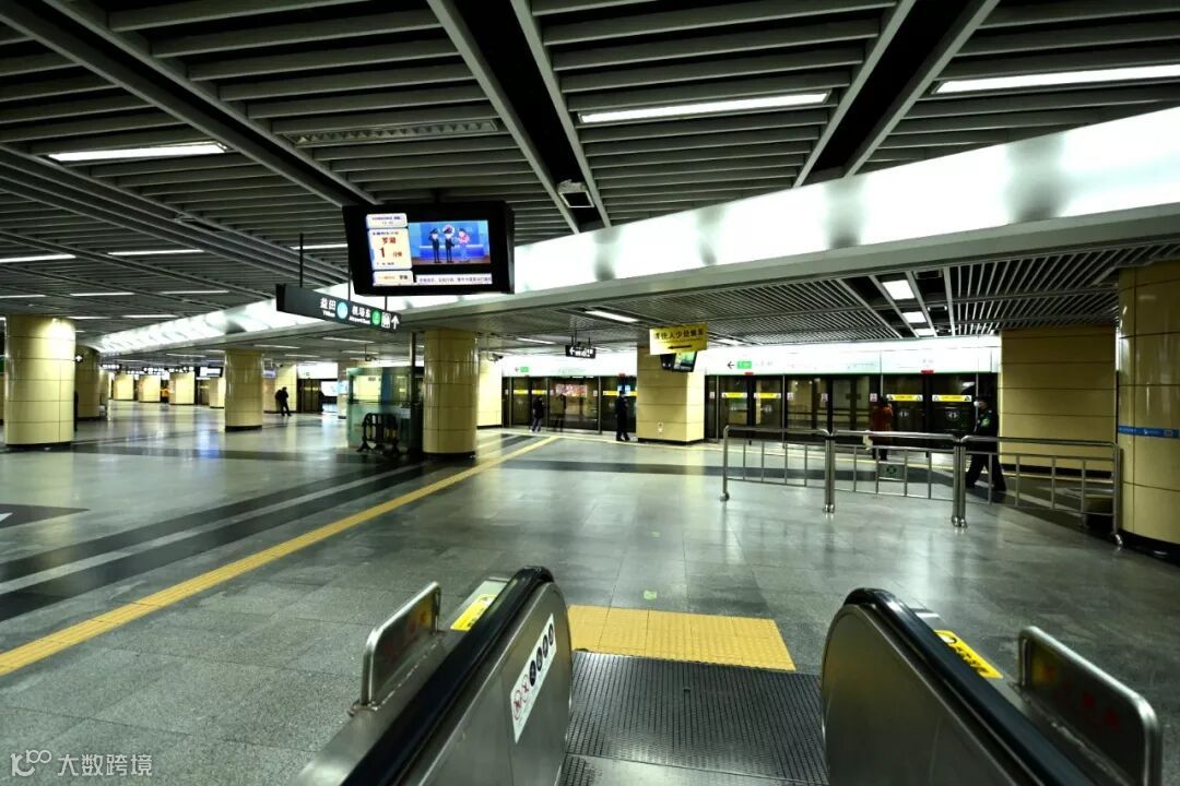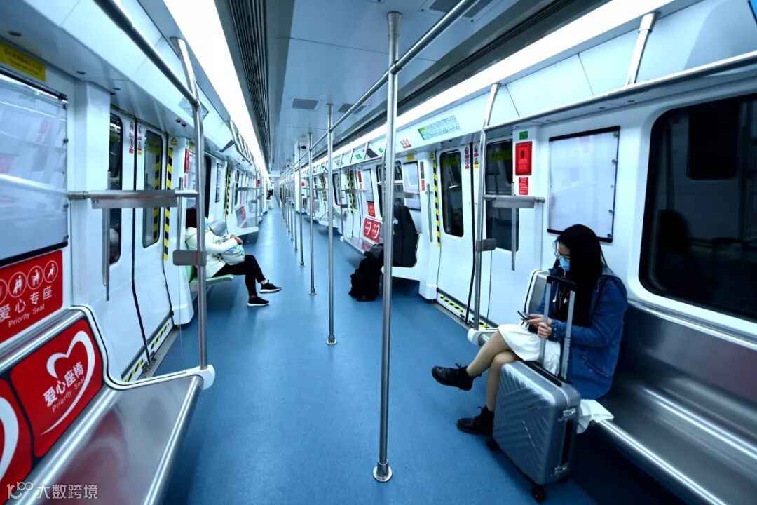 平日人流密度大的深圳地铁1号线老街站和地铁里的乘客。