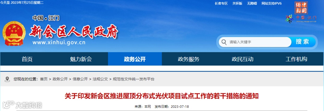 7月18日,新会区人民政府关于印发新会区推进屋顶分布式光伏项目试点工作的若干措施的通知,通知指出,设立光伏项目专项补贴资金,对新会区行政区域范围内已完成报批流程,于2023年1月1日起至2023年12月31日建成且首次并网计量的工商业屋顶光伏项目,经属地镇(街、区)、工业园区审核后纳入补贴范围(党政机关、国有及镇属企事业单位、村委会、公办学校及医院、商住楼、个人住宅物业除外),补贴对象为光伏项目的建筑物权属单位或个人,按装机容量一次性补贴,补贴标准为30元/千瓦。