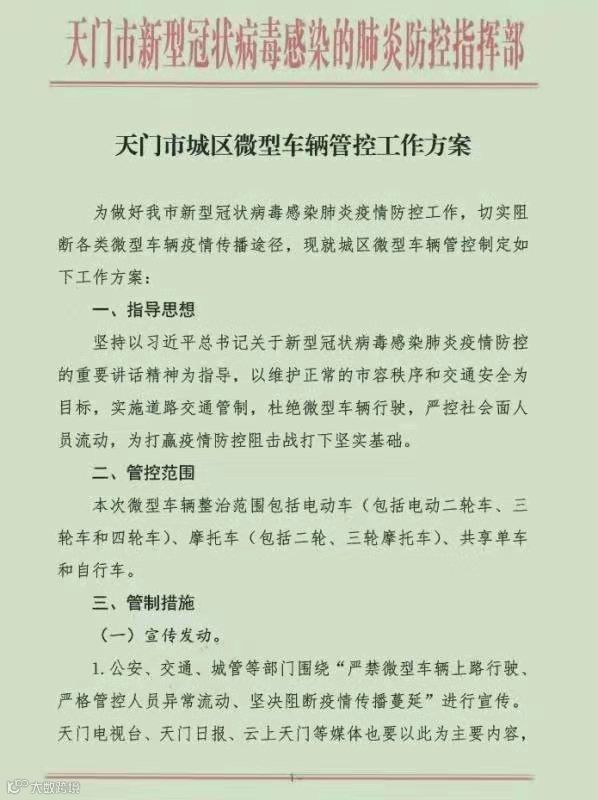 为防控新型冠状病毒,大年三十我所在城市发布规定禁止所有车辆进出本市,1月31日,市里继续加码车辆管控方案,禁止一切微型车辆在全市范围内通行,含电动车,三轮车和四轮车以及共享单车,比之前全城禁止机动车通行更为严厉,全城所有交通路口信号灯均为红灯,简而言之一句话,除公务车辆外,禁止一切社会车辆,人员流动。