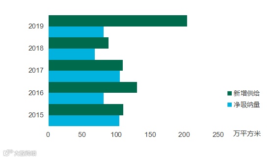 图:全年写字楼新增供应与净吸纳量表现
