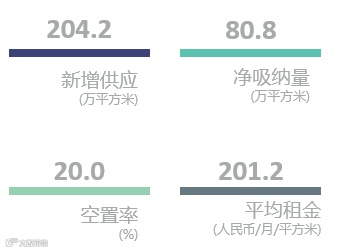 截至2019年末,世邦魏理仕跟踪的17个中国内地主要城市写字楼平均空置率为21.7%,空置面积主要集中在部分华北二线和中西部城市以及新兴商务区板块。全国写字楼租金指数同比下跌1.8%。