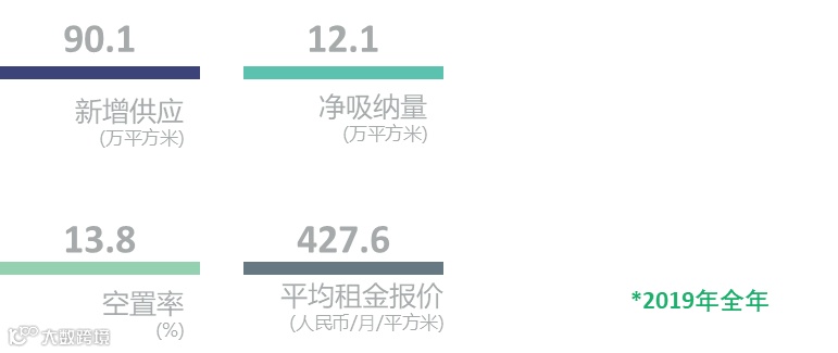 全年吸纳量表现较为稳定,共录得超80万平方米的新增吸纳,但从季度供应结构来看,受整体经济疲软以及贸易摩擦的影响,2019年下半年新增吸纳明显放缓,新入市项目去化缓慢与老旧项目因租户搬迁引起空置率升高并存。整体市场空置率年度同比上升8.7个百分点至年末达20.0%的高位,市场呈供过于求的整体态势。