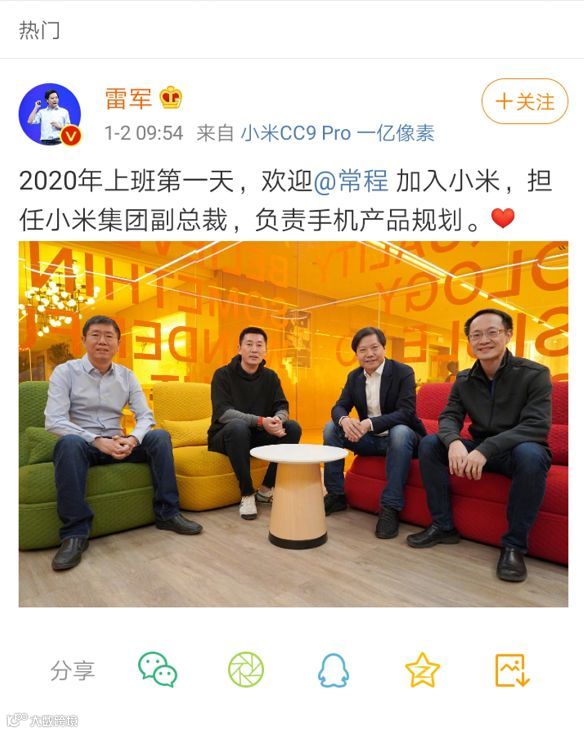 不过,对于雷军而言,其最钟情的公司仍是小米无疑。在2020年开年即退出金山系执行董事后,雷军频繁在微博上“搞事情”,其挖角也并非仅有常程一人。