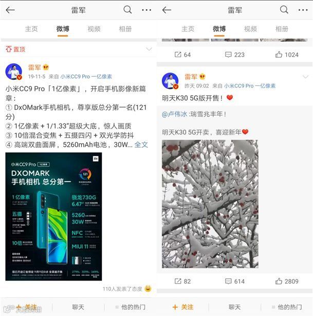 就在近期,雷军频繁为小米新款手机造势,关于CC9PRO款的详情介绍长期霸屏置顶,更为K30 5G版的发售频繁展开互动。