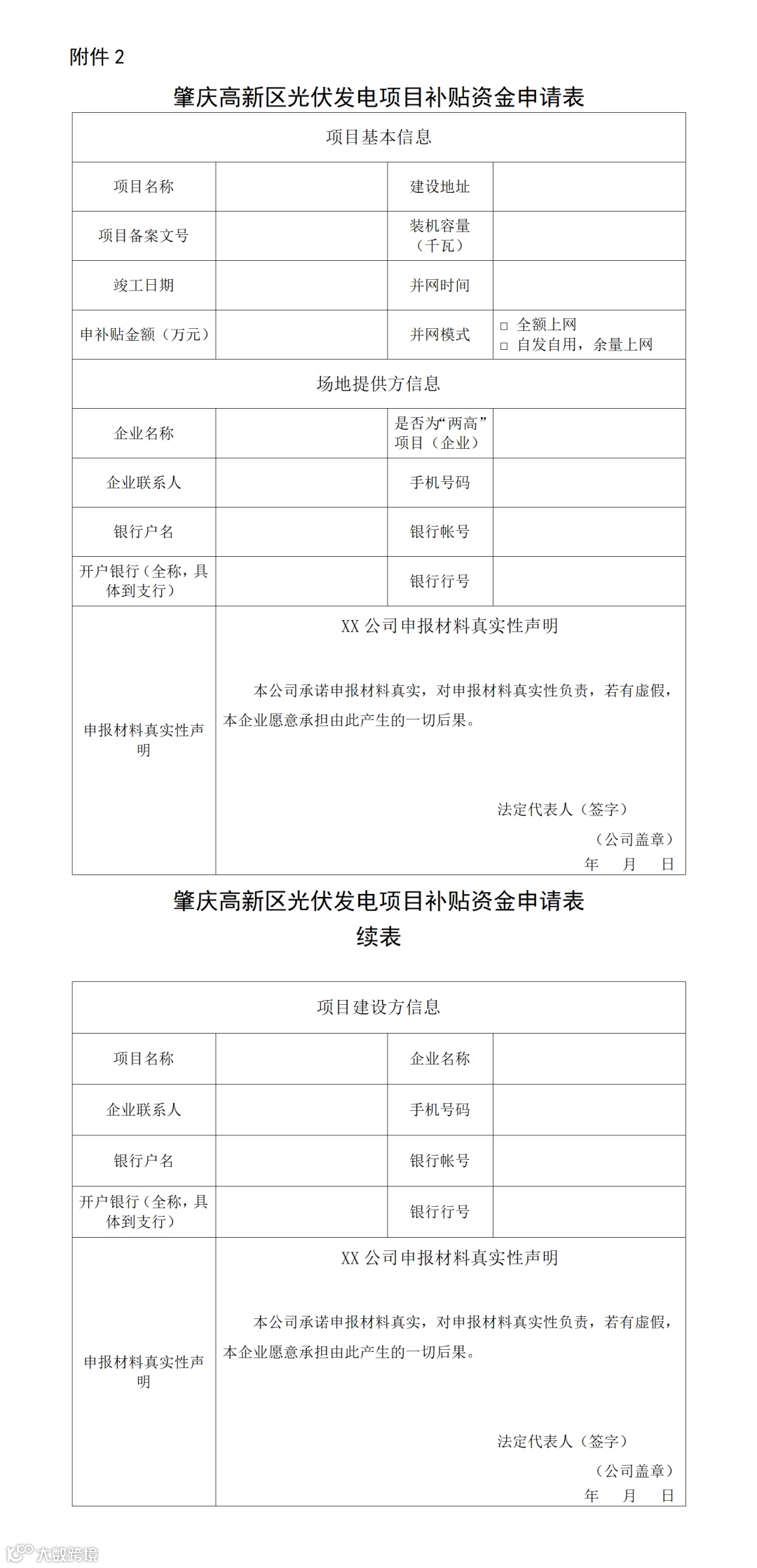 附件2:肇庆高新区光伏发电项目补贴资金申请表.doc