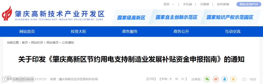 肇庆高新区节约用电支持制造业发展补贴资金申报指南