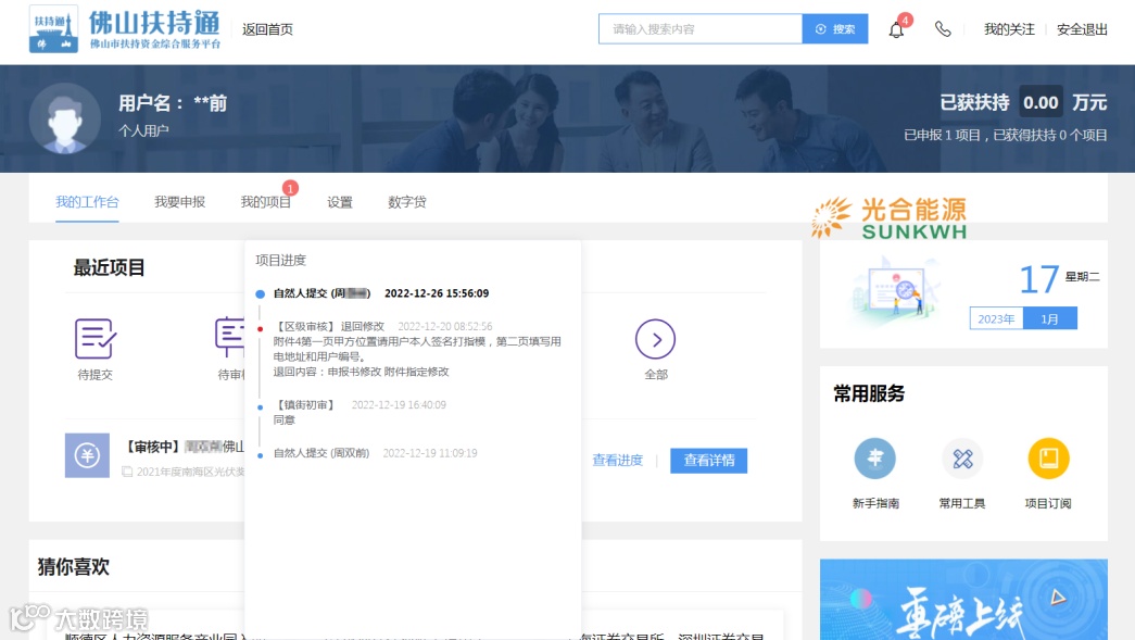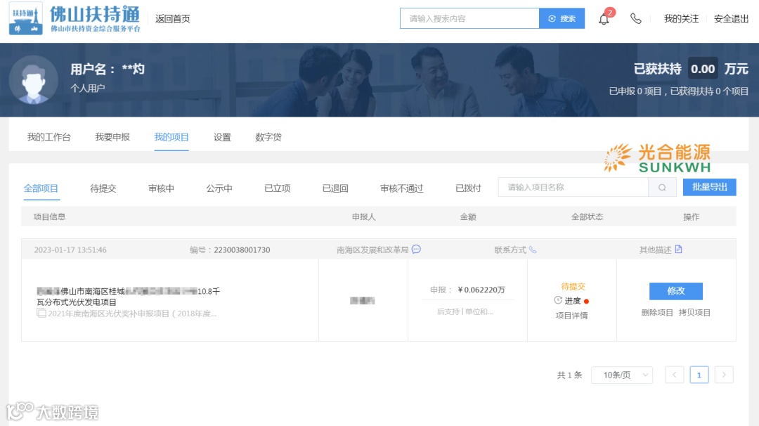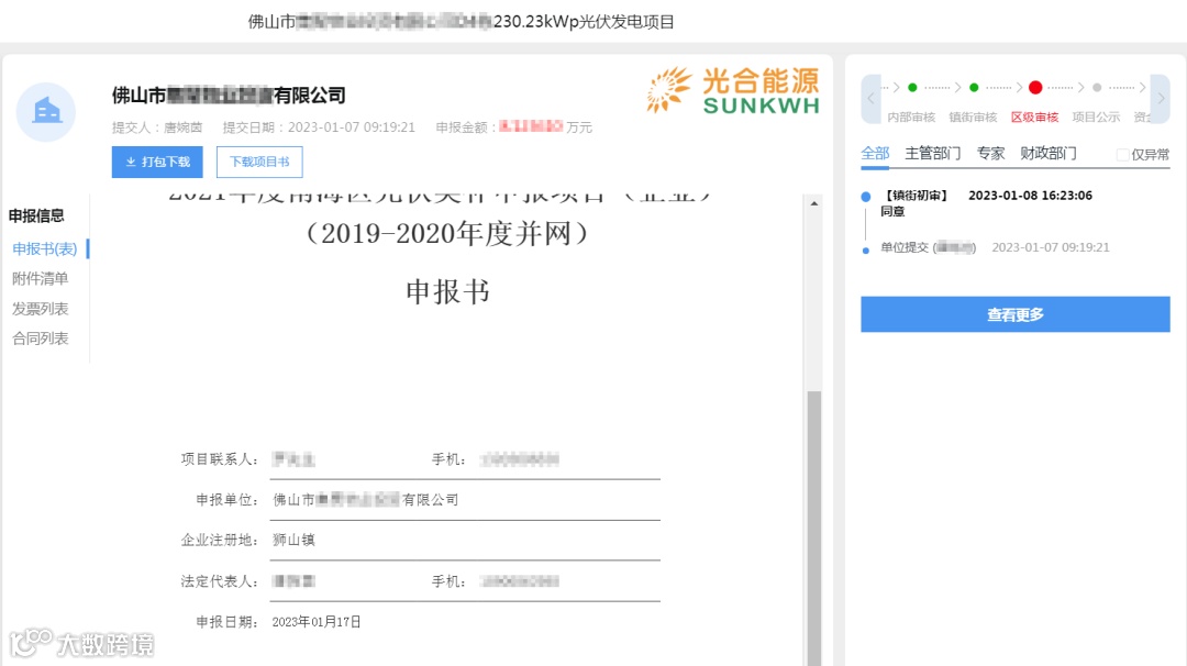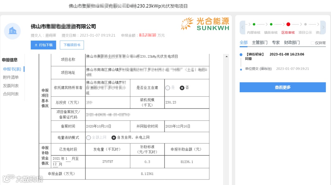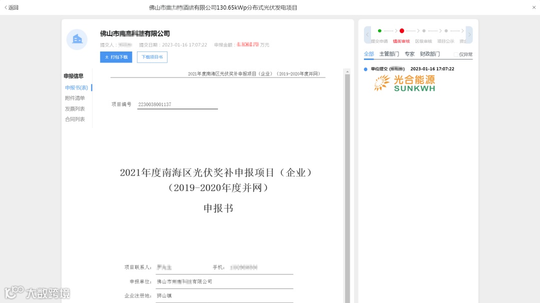 在2022年12月7日,佛山市南海区发改局发布《关于组织申报2021年度光伏应用项目奖励和补助资金的通知》;收到区发改局的通知要求后,光合能源立即开启协助光合能源南海区工商业、居民用户完成2021年光伏补贴申报工作。