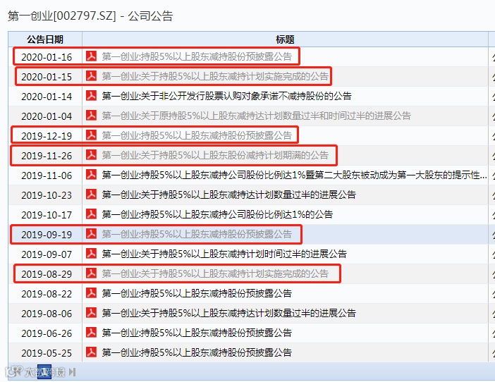 不到一年时间内,第一创业证券连续6次收到来自大股东的减持告知函。