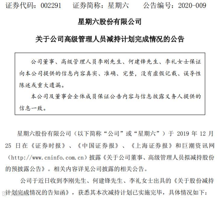 值得注意的是,星期六除了上述公告外,当晚也迎来了一份减持公告:三名高管于1月16日和17日合计减持了37.98万股,减持计划已实施完毕。
