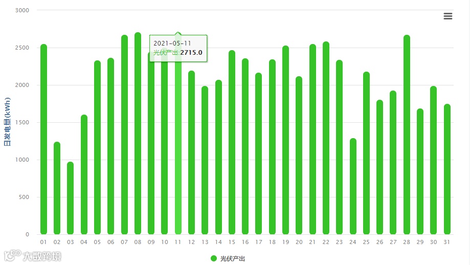 (表2 今年5月发电量数据,5月11日为最高发电量,达2715.0kWh)