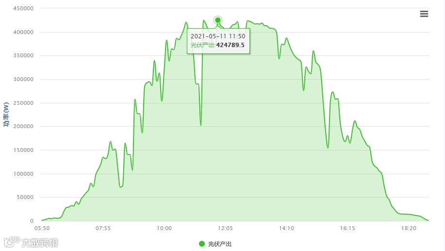(表3 5月11日发电量数据,中午11:50阳光充沛,所以发电量最高,发电功率达424789.5W)