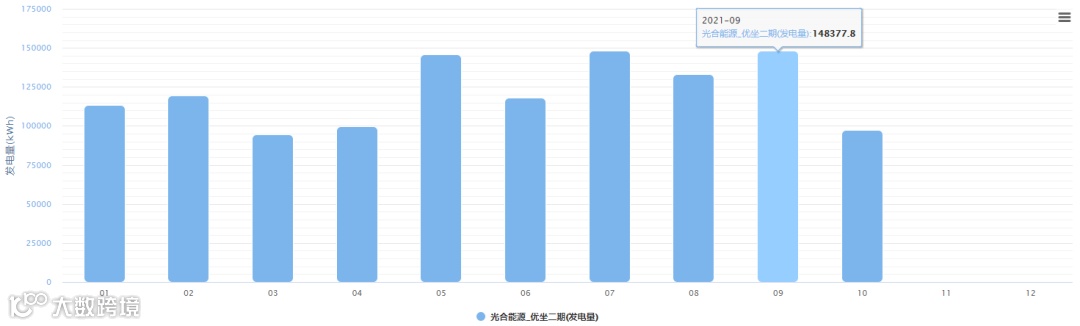 (表2 二期2021年1-10月发电量数据,9月为最高发电量,达148377.8kWh)
