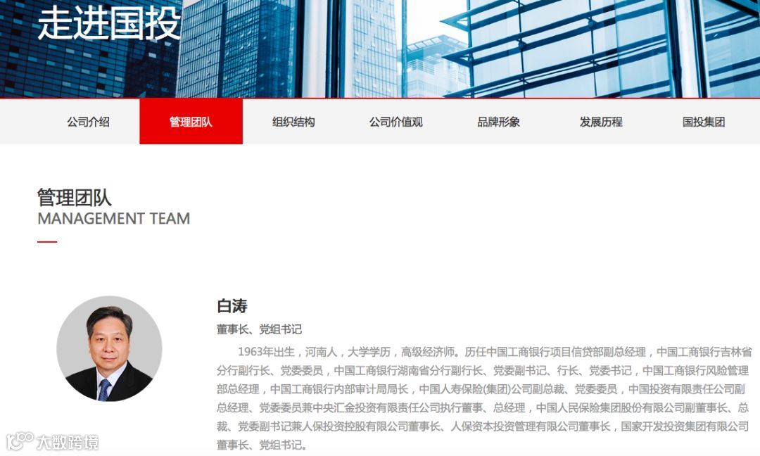 目前,国投官网“管理团队”一栏中,已有白涛任职董事长、党组书记的信息。