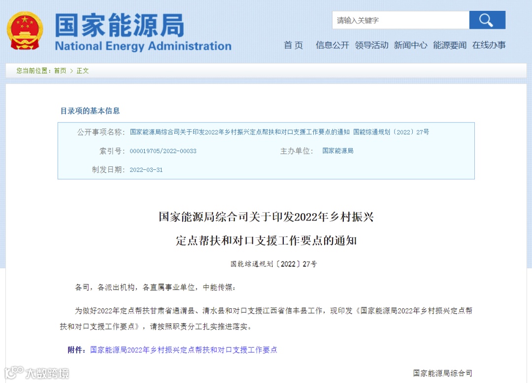 国家能源局综合司关于印发2022年乡村振兴