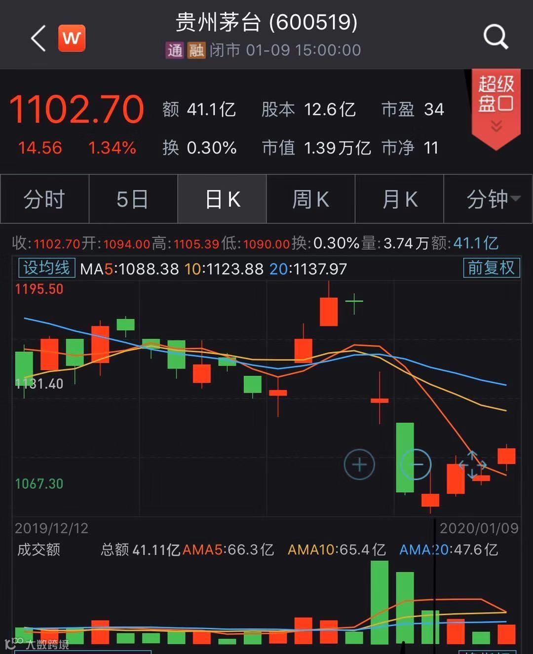 值得注意的是,1月9日消息,茅台和天猫今年战略合作再升级:春节茅台将在天猫超市继续加量发售,当日茅台已大涨1.34%。
