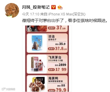 有人说:薇娅终于对茅台出手了,看李佳琦啥时候跟进。
