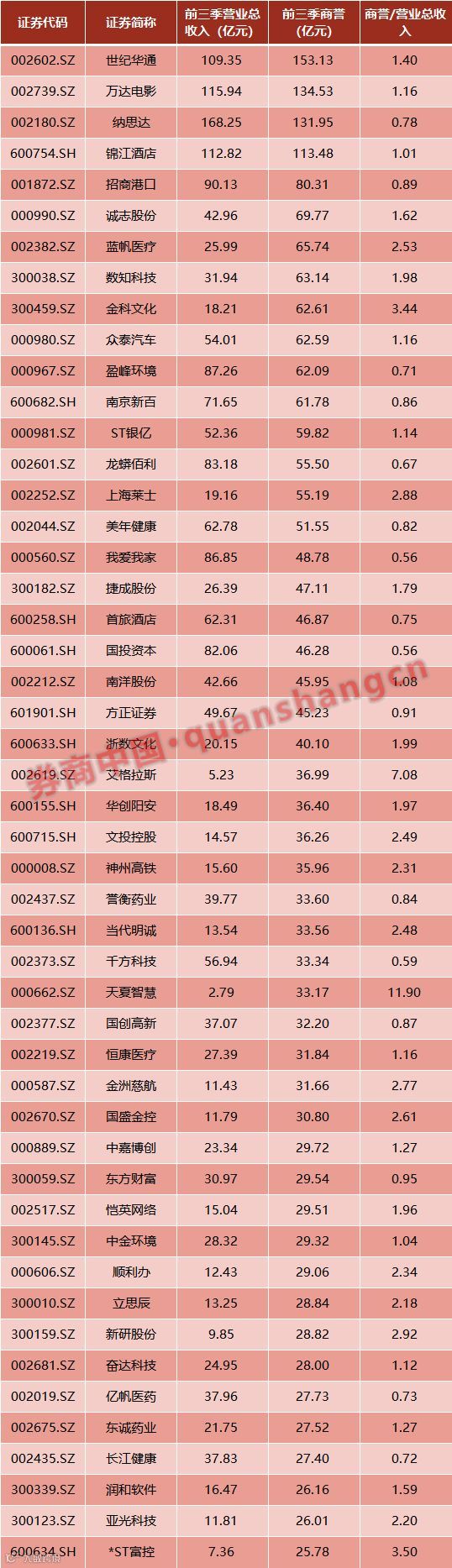 首先商誉奇高的上市公司可能需要在业绩披露期回避。根据Wind资讯数据,下列公司商誉规模较大,相对营收的比值比较高,若计提减值可能会对上市公司业绩带来冲击。当然,并非所有列示的公司都会有商誉减值的情况出现,但仍值得甄别和留意。