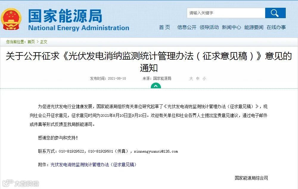 又一利好! 国家能源局发布《光伏消纳监测统计管理》征求意见
