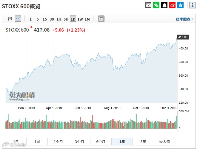 12月16日,欧洲基准指数泛欧斯托克600指数上涨1.23%,创下历史新高。