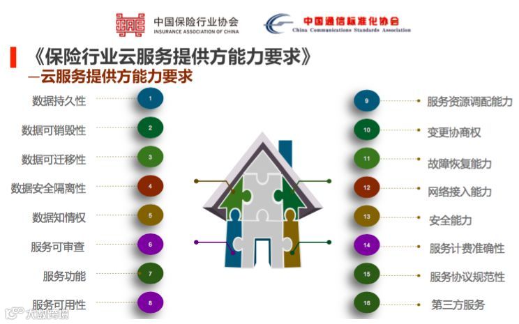 此次发布的《保险行业云服务提供方能力要求》标准,规定了云服务提供方为保险行业提供云服务时,需要具备的服务能力,一共16项。