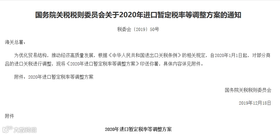 为推进贸易高质量发展,国务院关税税则委员会近日印发通知,自2020年1月1日起,对部分商品的进口关税进行调整。