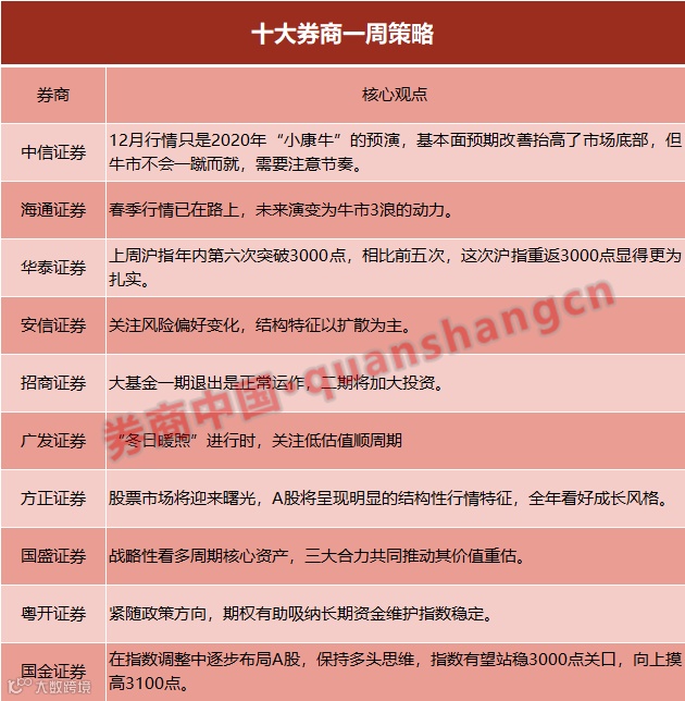 上周沪指年内第六次突破3000点,之前3/6/9/10/11月共5次突破,除3月外,其余四次维持时间较短。相比前五次,这次沪指重返3000点显得更为扎实:一是主驱动力差异,3月是流动性宽松、金融数据超预期,6/10月是中美关系边际改善,9月是海内外流动性边际改善,11月是MLF利率下调,而本次是经济弱改善+中美第一阶段协议达成;二是市场资金面差异:本次日均成交额高于6/10/11月、接近9月、低于3月;年内六次突破均有外资流入加持,但本次与3月的融资余额高于其他四次,而非杠杆资金成交活跃度高于3月;沪指PE-TTM低于前五次,创业板指估值亦较低。