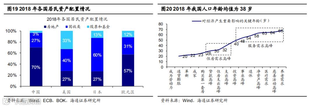 我国的股权融资还亟待发展。十九大报告指出,我国要增强金融服务实体经济能力,提高直接融资比重;2018年11月,我国宣布设立科创板并试点注册制;19年2月22日,中央政治局会议指出“金融是国家重要的核心竞争力”,并指出要“深化金融供给侧结构性改革”,这些均预示着我国也将像美国一样将进入股权融资大时代。从股市的资金供给端看,未来居民和机构的大类资产配置都将偏向权益。居民方面,2018年我国居民资产中房地产占比为70%,固收类占比27%,股票和基金配置比例仅为3%,而同期美国居民配置地产、固收类、股票和基金的比例为27%、40%、33%,随着我国人口老龄化,地产投资属性弱化,未来居民资产配置将从地产转向股票。