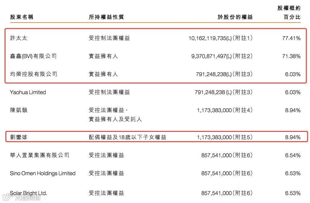 2019年中报显示,许家印及其夫人通过鑫鑫有限公司、均荣控股有限公司等合计持有恒大77.41%,香港富豪刘銮雄持股8.94%,若恒大2018年度分红187亿元,则许家印和刘銮雄有望分得145亿元和16.7亿元。