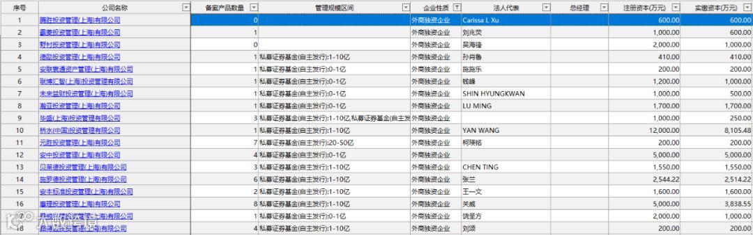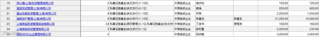 以下是全部25家外商独资私募证券投资基金的相关信息: