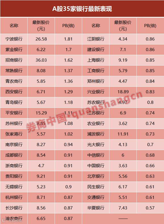 在银行股纷纷破净之下,宁波银行、紫金银行、招商银行、常熟银行、青农银行、西安银行、青岛银行、平安银行、苏州银行和张家港行成为未破净的“少数派”。
