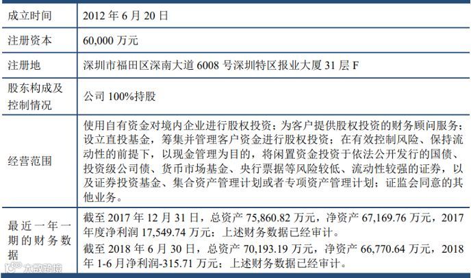 长城长富成立于2012年6月20日,注册资本为6亿元,是长城证券全资子公司。截至2018年年底,长城长富资产总额6.78亿元,净资产6.56亿元;2018年全年实现营业收入2934.12万元,净利润164.91万元。
