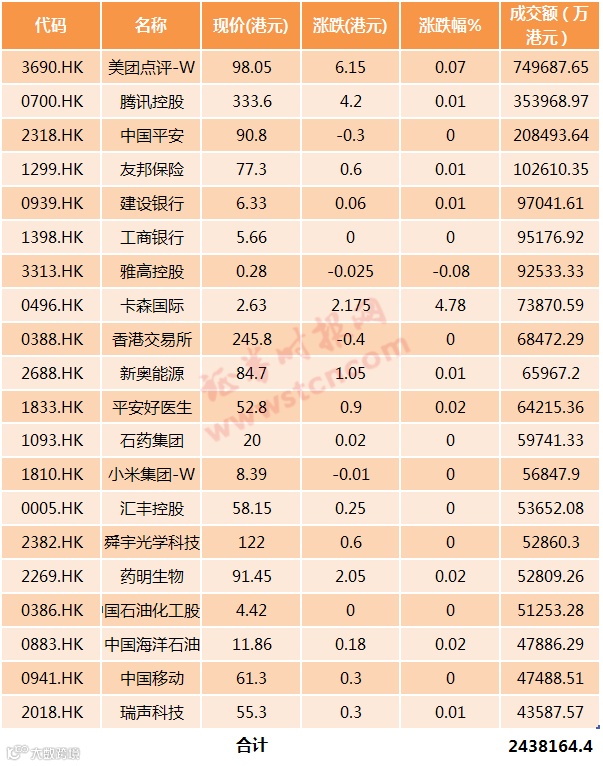 以下为前20大活跃个股成交额: