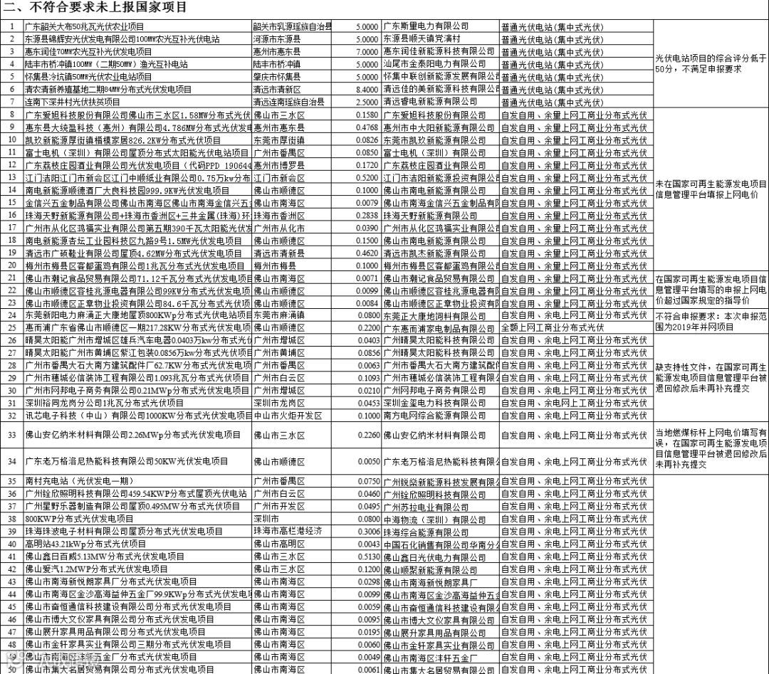 附件:2019年广东省光伏发电国家补贴竞价项目审核情况表